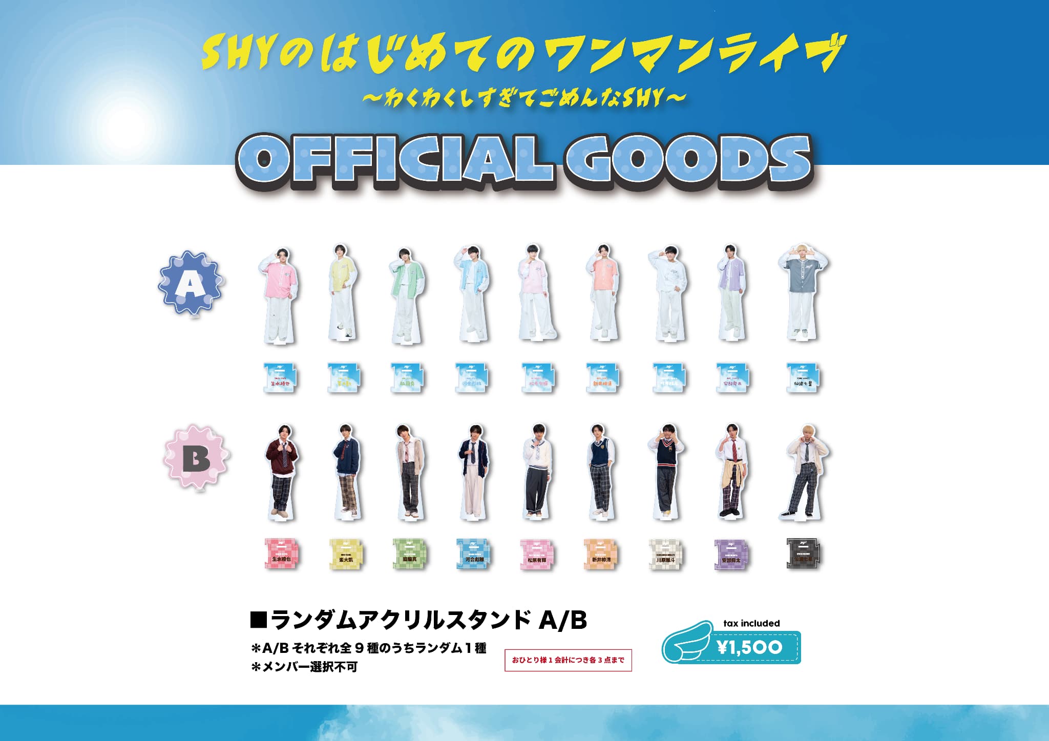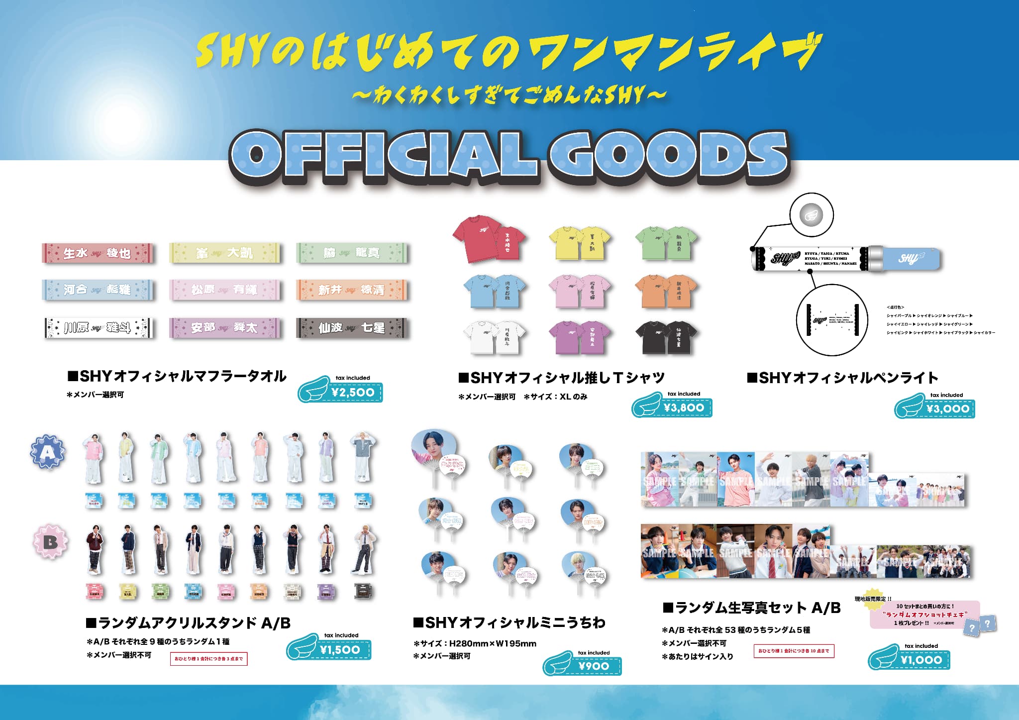 【NEWS】2026年1月17日(土)開催「SHYのはじめてのワンマンライブ〜わくわくしすぎてごめんなSHY〜」のオフィシャルグッズラインナップ公開&つば男STOREでの事前通販が決定!!(12/29更新)