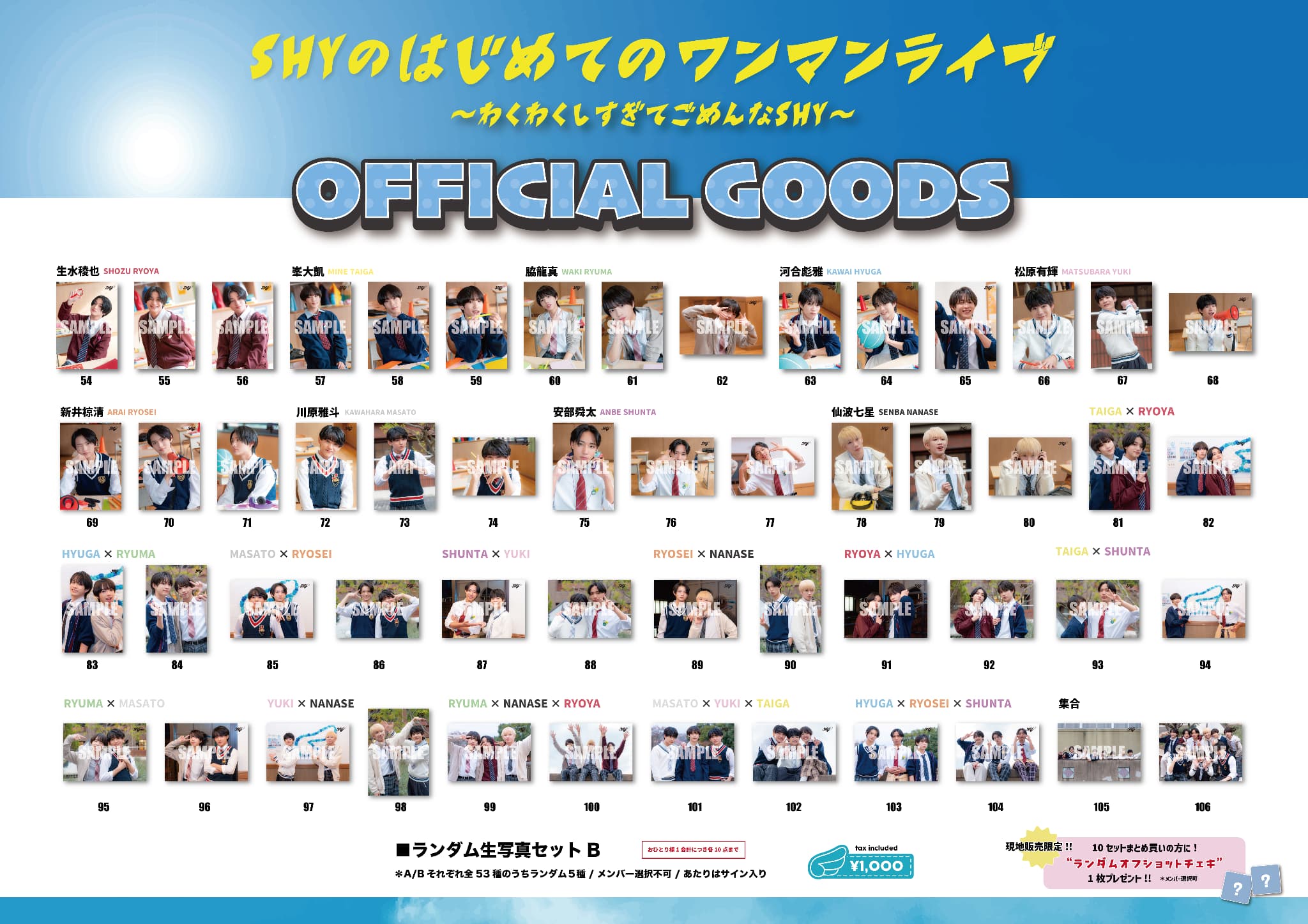 2026年1月17日(土)に新宿ReNYにて開催される「SHYのはじめてのワンマンライブ〜わくわくしすぎてごめんなSHY〜」のオフィシャルグッズの販売が決定いたしました!