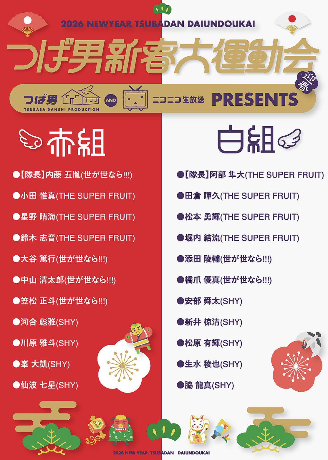 【NEWS】2026年1月24日(土)開催 つば男×ニコ生 presents「つば男 新春大運動会 2026」出演決定!!