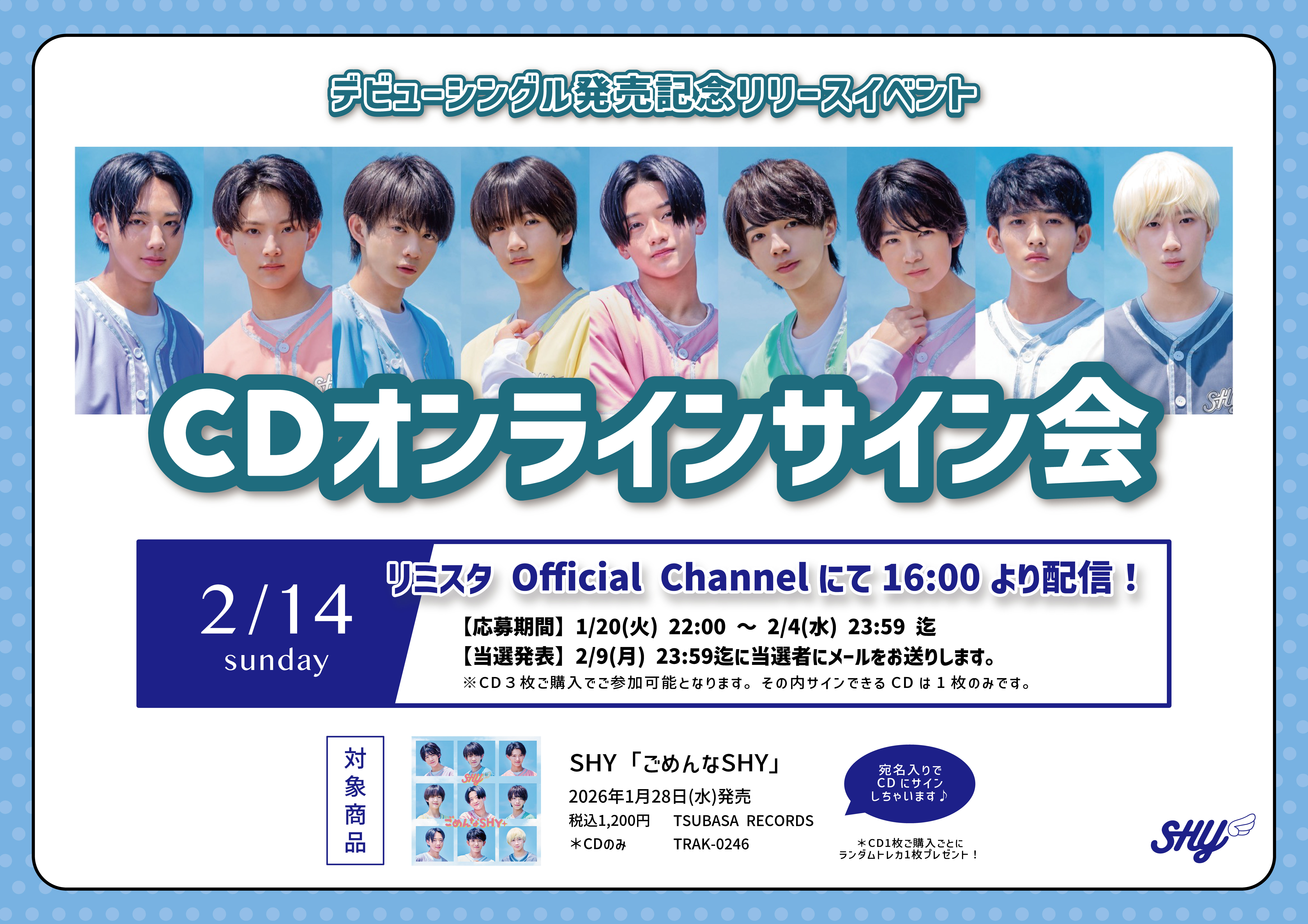 【NEWS】2月14日(土)にSHYデビューシングル発売記念リリースイベント CDオンラインサイン会の実施決定!!